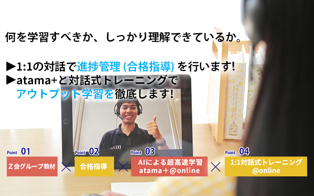 | 3.実力がつく間違いのない教材を使用している | 難関大合格実績を誇るZ会グループ教材を使用します。 | |